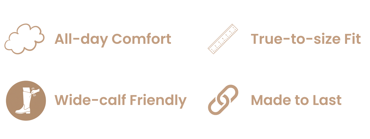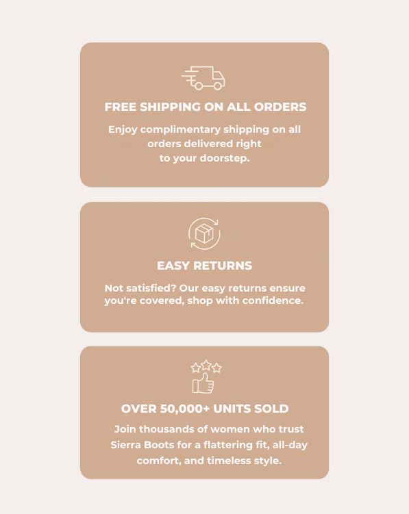 No more worrying about boots that pinch, squeeze, or leave awkward gaps. Sierra Boots are designed with a wide-calf friendly shaft that gives you room to move while still keeping a sleek, flattering shape.